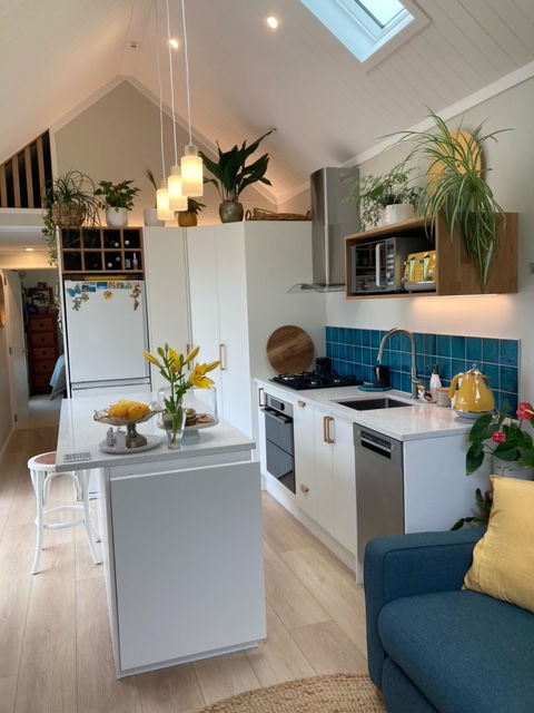 The Alfa is for people who love light, space, and a good breakfast bar. It’s single level (no stairs, thank you very much), with wide stacker doors that let the sunshine in and a lounge that practically begs for a woodburner. The kitchen does the heavy lifting, fridge, oven, slimline dishwasher, pantry, so you can focus on the important stuff, like what’s for dinner. There’s a master bedroom big enough for a king, a second room that doubles as a guest nook or home office, and both open straight onto a private deck. Add a bathroom with a real bath (yes, you can stretch out in it), and you’ve got small-home living that doesn’t feel small at all.